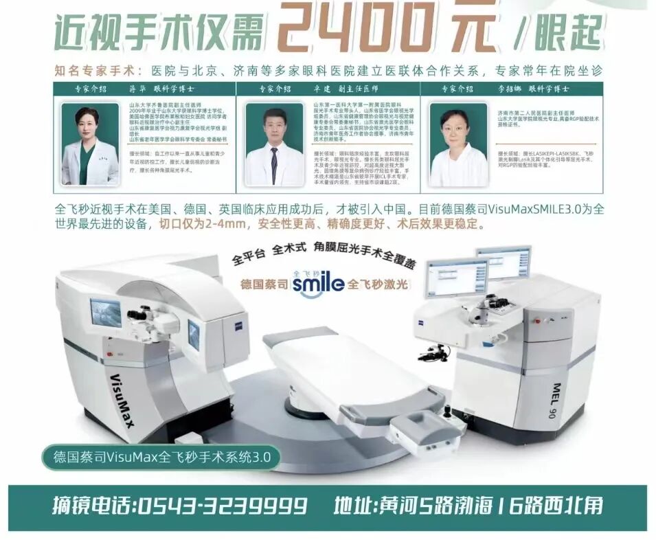 从沧州来到滨州之前,小武父亲详细的搜集了滨视眼科医院的相关信息,已做康复患者达数百人,其手术设备是目前最先进的德国蔡司VisuMax全飞秒手术系统3.0,目前是滨州唯一一台,医院的手术主导医生都是来自省级三甲医院眼科专家,父亲最终选择滨视眼科医院来为儿子做全飞秒近视手术。