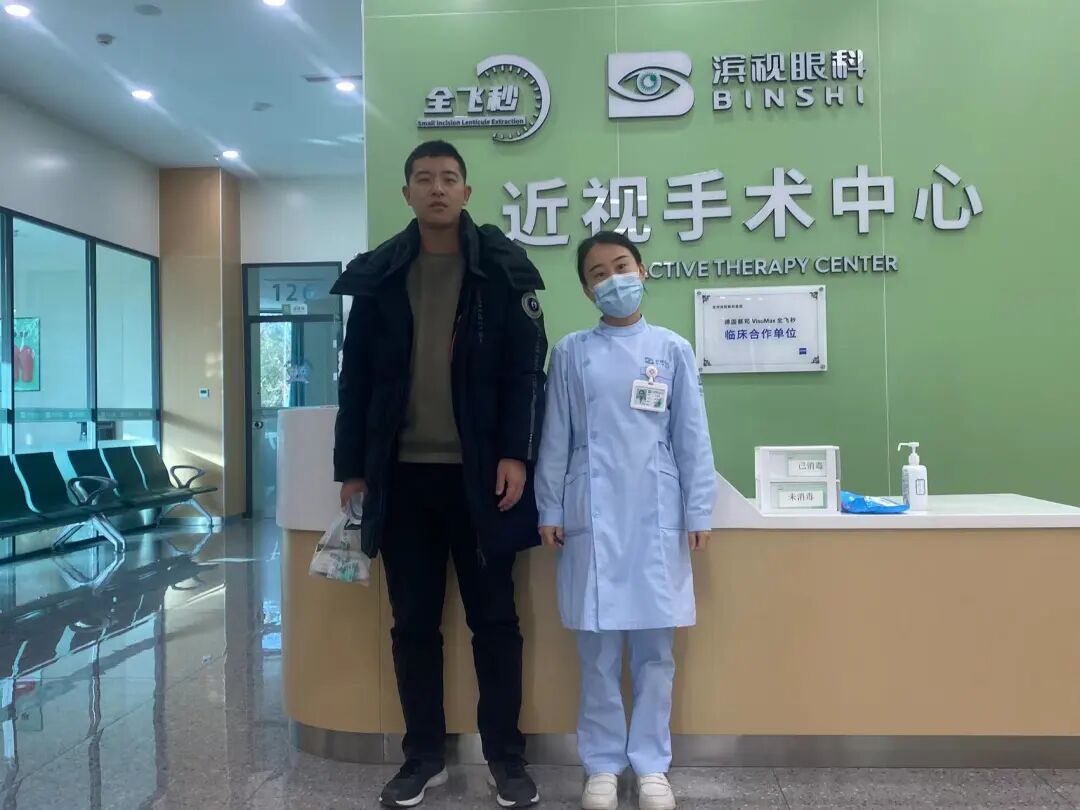 沧州小伙为了自己的家庭和事业跨越280公里来到了滨视眼科医院做了全飞秒近视摘镜手术!